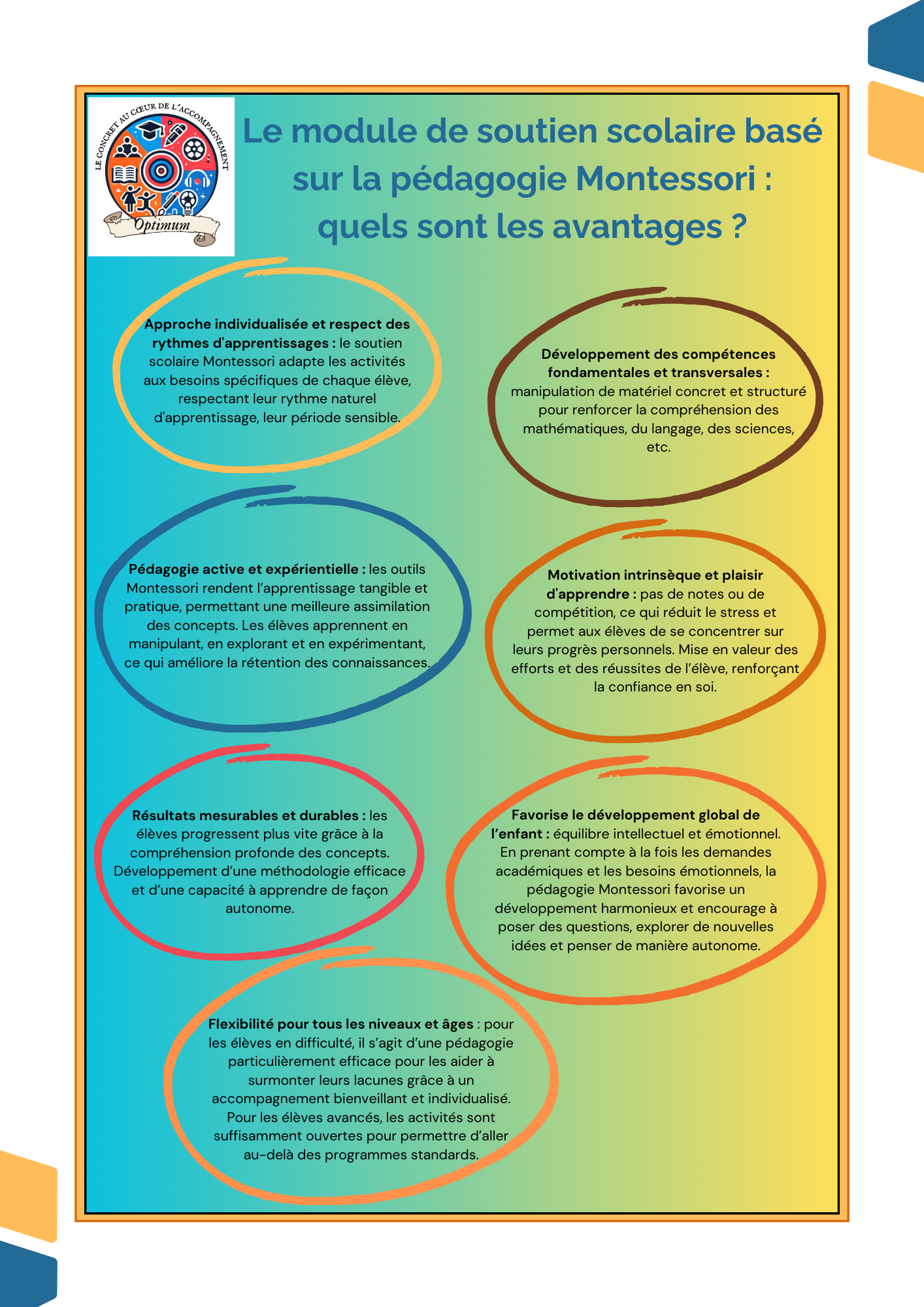 Le soutien scolaire basé sur la pédagogie Montessori pour les élèves de 3 à 12 ans